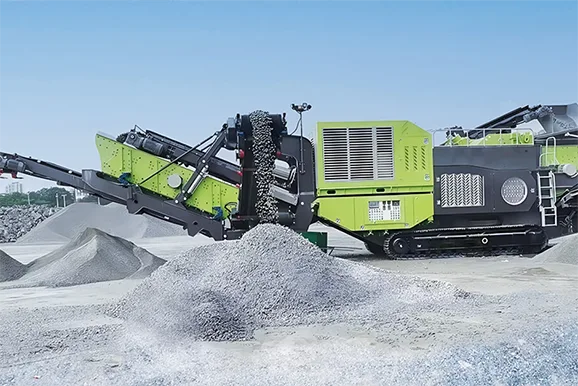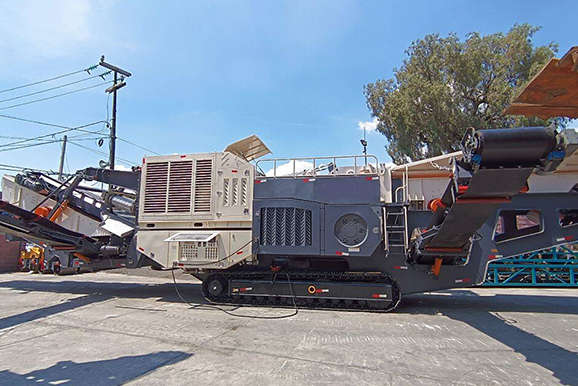 履带式移动破碎站产品具有重量轻、体积小,整机采用全轮驱动,可实现原 地转向,特别适合狭窄场地工作。